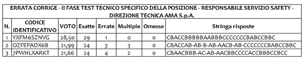 ERRATA CORRIGE – II Fase Test Tecnico Specifico della posizione – Responsabile Servizio Safety – Direzione Tecnica AMA S.p.A.