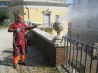 Le operazioni, effettuate da 4 operatori con il supporto di 1 idropulitrice, hanno riguardato la scalinata di accesso, le mura perimetrali della Villa e la fontana presente nel cortile interno, deturpate dalle azioni vandaliche dei writers.