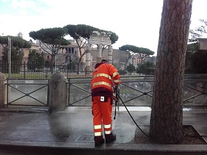 Gli interventi, disposti dal Dipartimento Tutela Ambientale di Roma Capitale, vedono quotidianamente impegnati 12 operatori supportati da 6 mezzi speciali: 2 spazzatrici aspiranti, 2 idropulitrici ad acqua calda, 1 lavastrade e 1 spazzatrice con sistema a tramogena. Le operazioni prevedono anche trattamenti con prodotti a base di enzimi per igienizzare e sanificare le aree interessate.