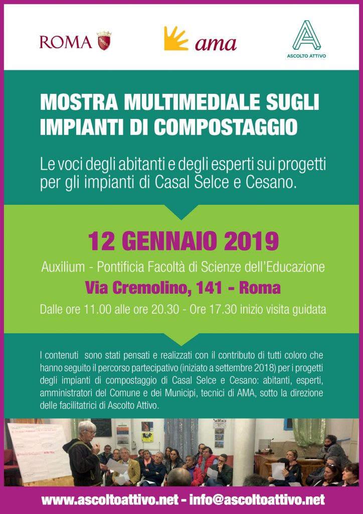 Sabato 12 gennaio 2019 mostra “Impianti di compostaggio, ciclo integrato e autentica partecipazione”, presso Auxilium - Pontificia Facoltà di Scienze dell’Educazione, via Cremolino 141 - Roma.