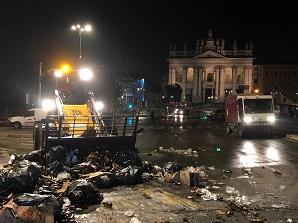 Già dalle primissime ore del mattino, sia piazza San Giovanni in Laterano sia tutte le strade limitrofe (piazzale Appio, via Emanuele Filiberto, via Carlo Felice, ecc.) sono state riaperte al traffico e alla regolare viabilità. Interventi di rifinitura sono tuttora in corso e termineranno non appena il palco e le attrezzature allestite per l'evento saranno state interamente smontate (come già definito in sede di conferenza dei servizi). Squadre dedicate stanno inoltre effettuando operazioni di igienizzazione e sanificazione presso l’area di San Giovanni in Laterano e le zone di afflusso/deflusso adiacenti la stazione Termini, ecc. Entro la mattinata verrà ultimato il riposizionamento dei cassonetti rimossi per motivi di sicurezza dalla piazza e dalle aree limitrofe.