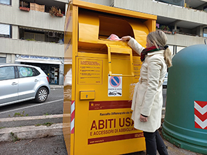 A Roma, la raccolta differenziata degli indumenti usati viene effettuata tramite 1.500 contenitori gialli dislocati sul territorio dei 15 municipi della città. I cassonetti sono di proprietà AMA e attrezzati anche con dispositivi anti-intrusione. Il servizio di prelievo, trasporto e conferimento è regolamentato da apposito bando e viene svolto dalle 4 cooperative sociali aggiudicatrici della gara.