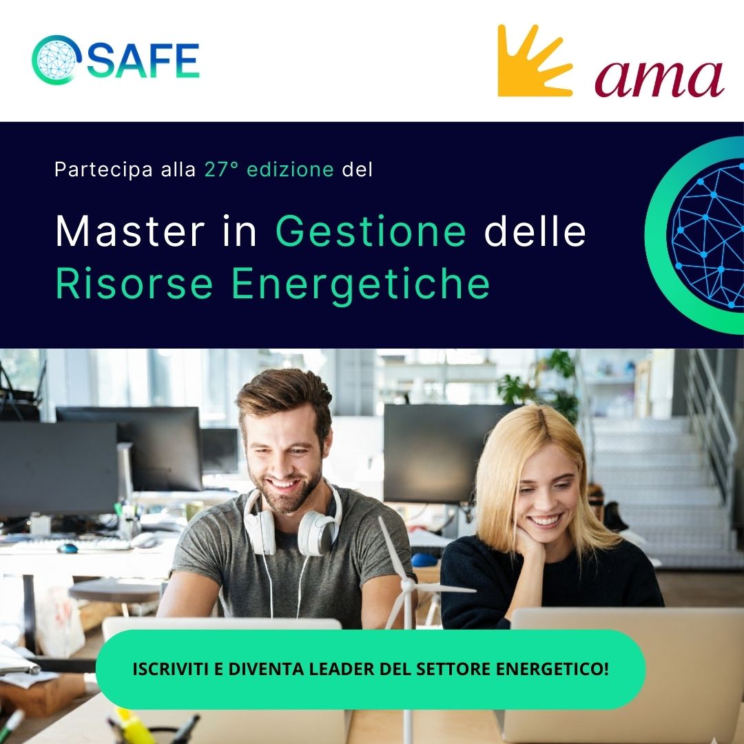 Rinnoviamo la collaborazione con SAFE per la 27° edizione del Master in Gestione delle Risorse Energetiche, uno dei percorsi più riconosciuti in Italia per la formazione di giovani professionisti nel settore energia e ambiente.