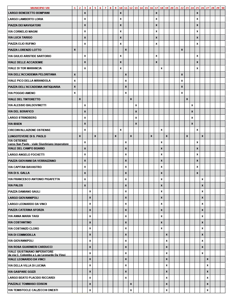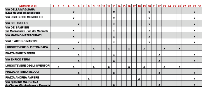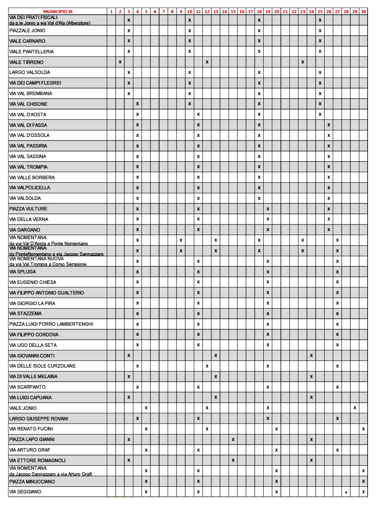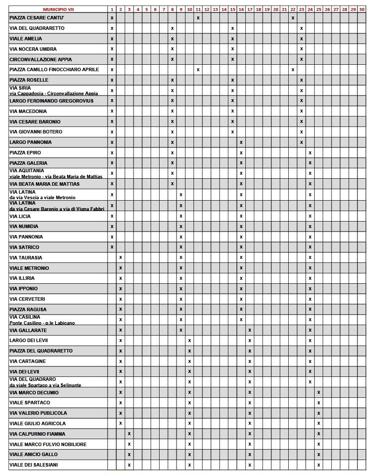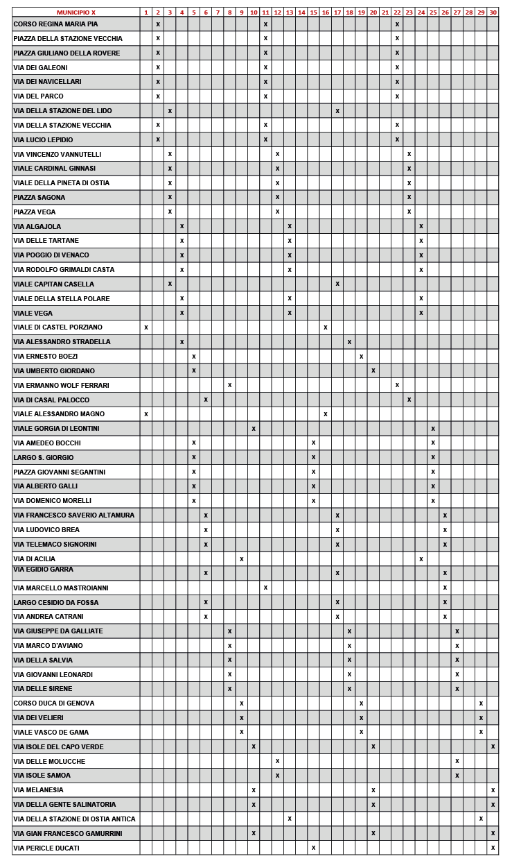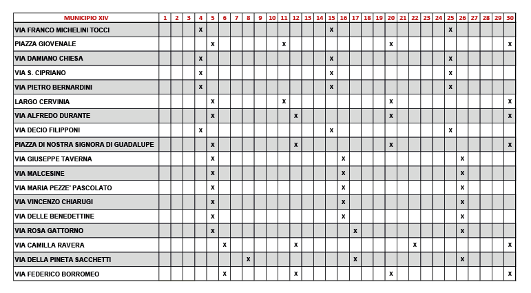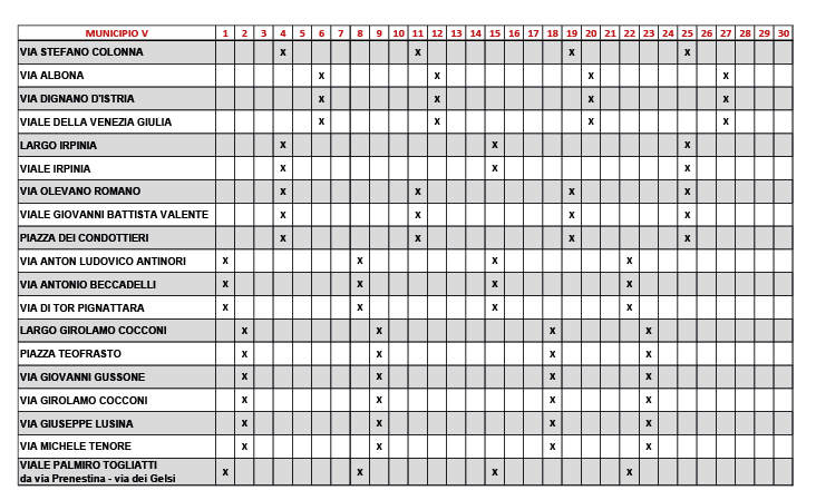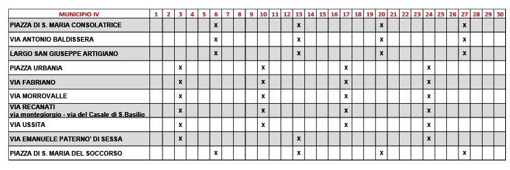 Di seguito è possibile visualizzare le strade interessate dal servizio per ciascun Municipio nel mese di settembre 2025.