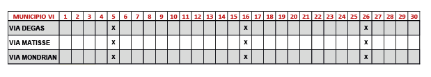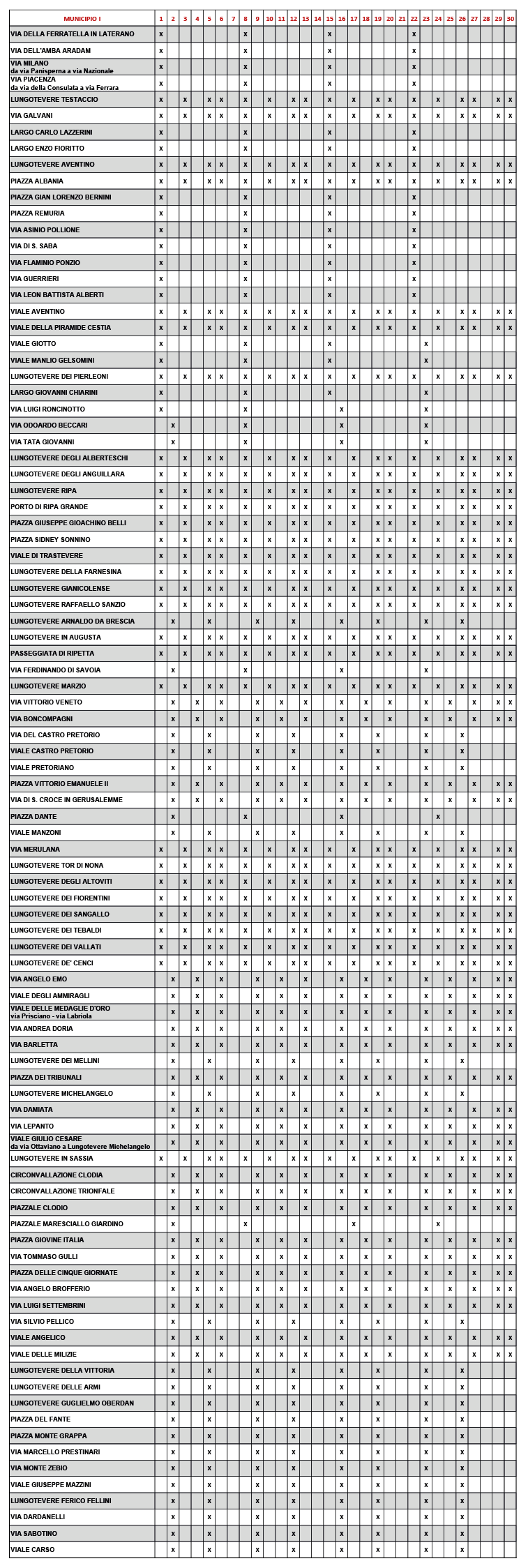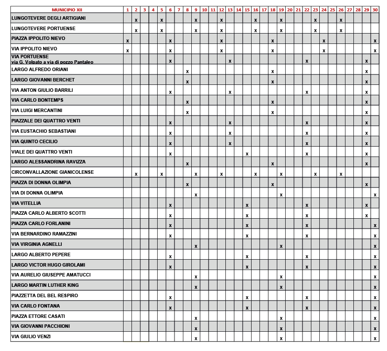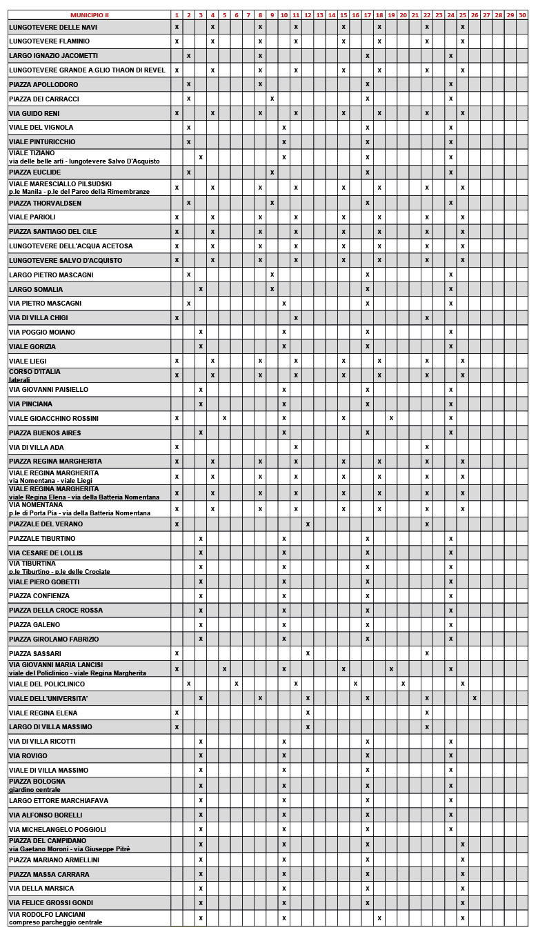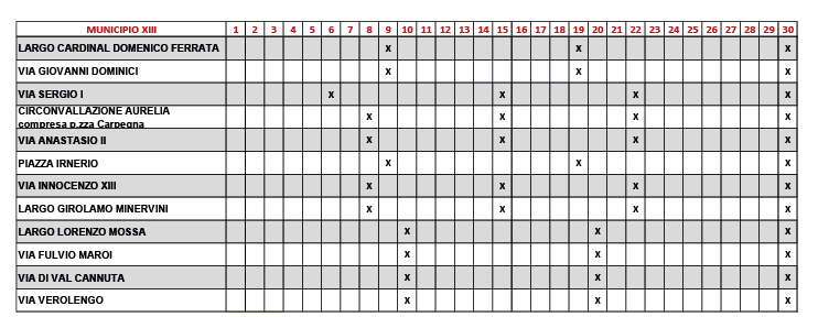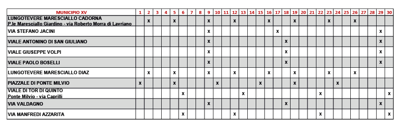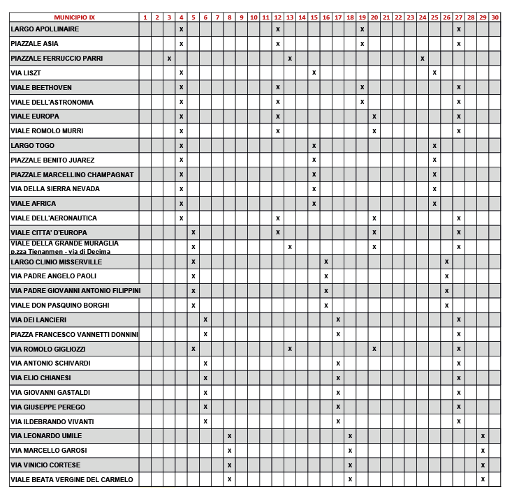 Di seguito è possibile visualizzare le strade interessate dal servizio per ciascun Municipio nel mese di settembre 2025.