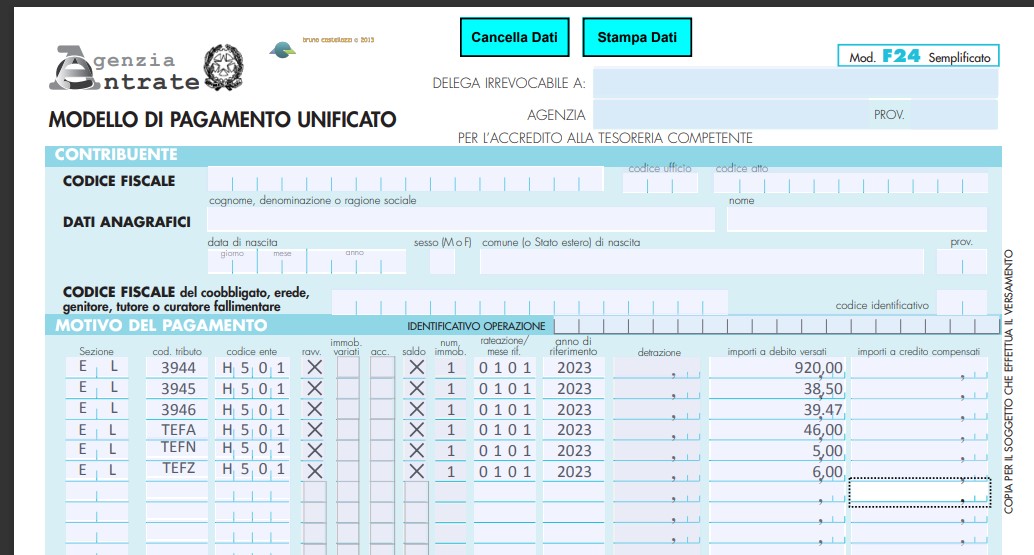 - Il pagamento deve essere eseguito mediante F24